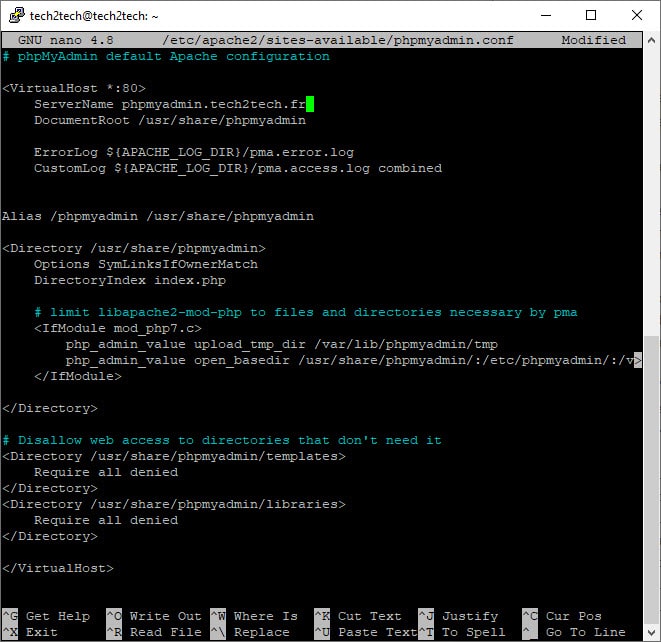 sudo nano /etc/apache2/sites-available/phpmyadmin.conf