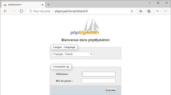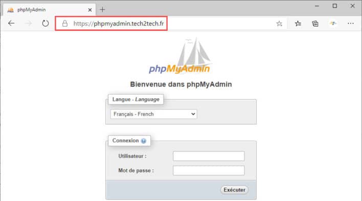 Vous devriez maintenant pouvoir accéder à l’interface Web phpMyAdmin via votre sous-domaine :